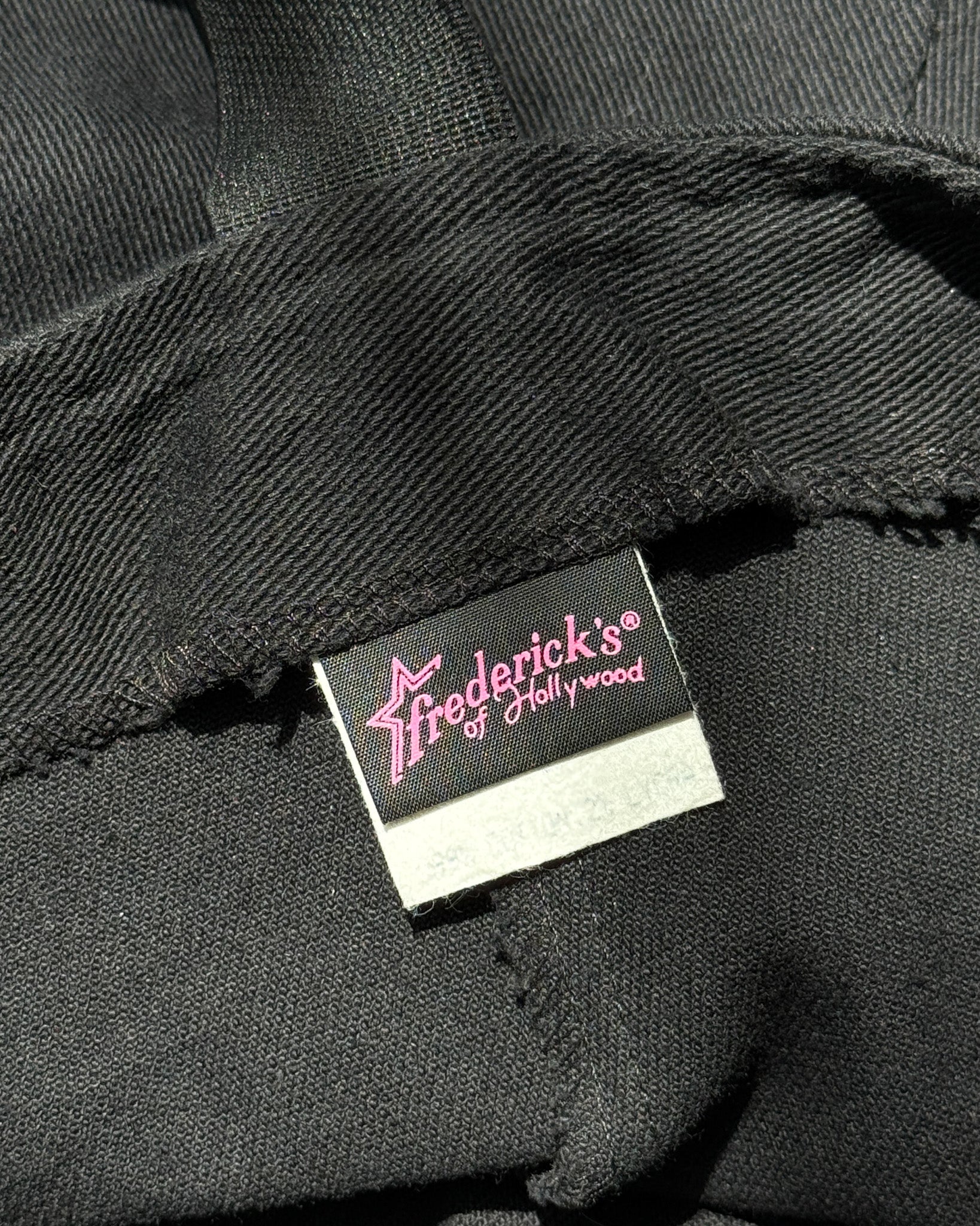 Vintage 1990s Frederick's of Hollywood black lace up suspender shorts.