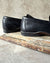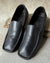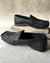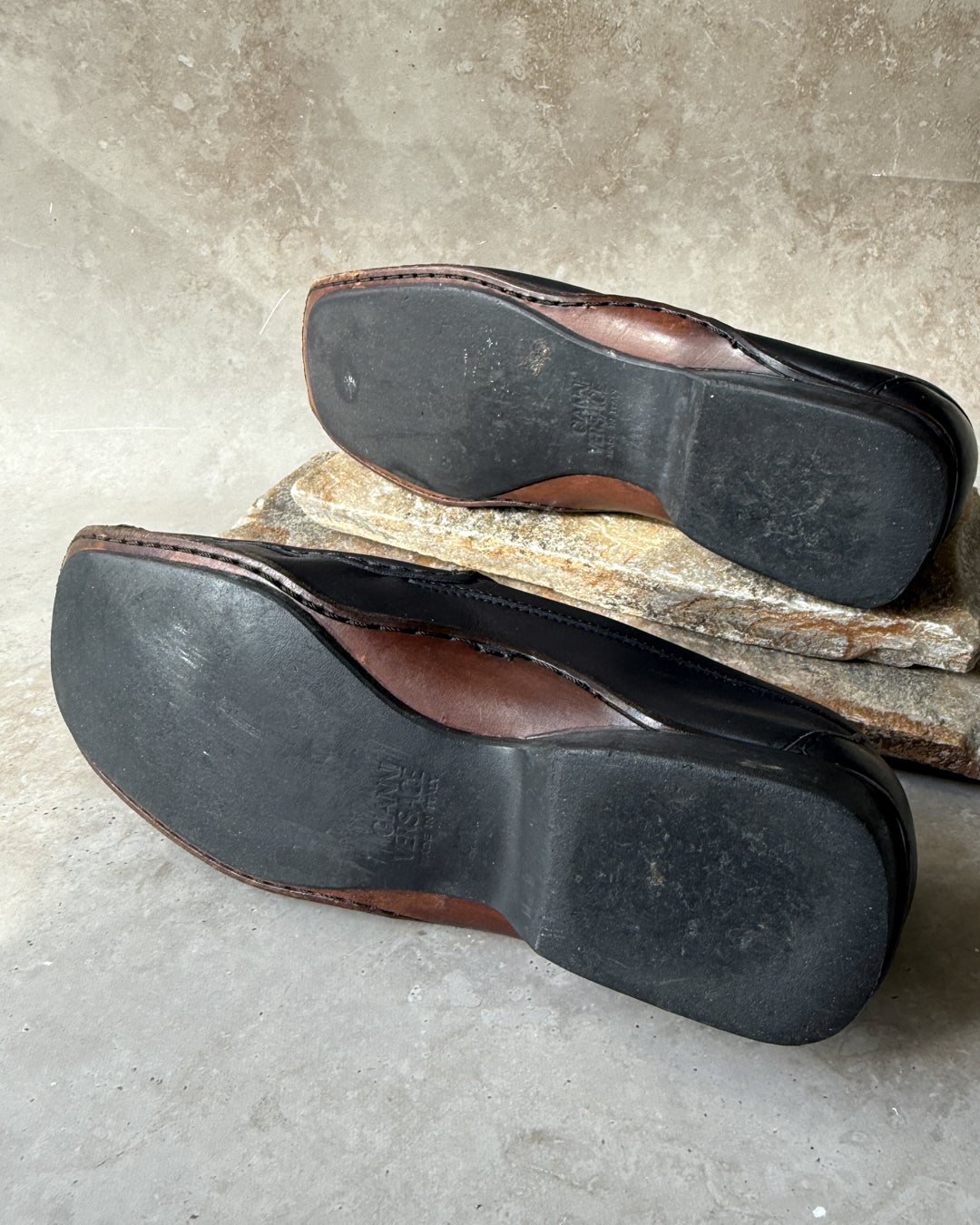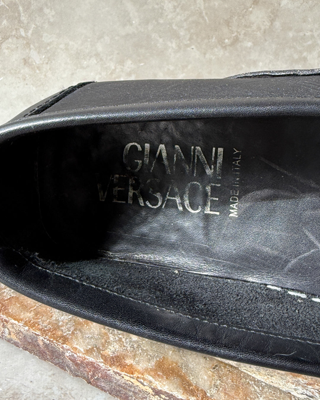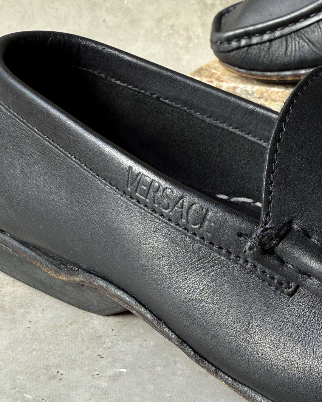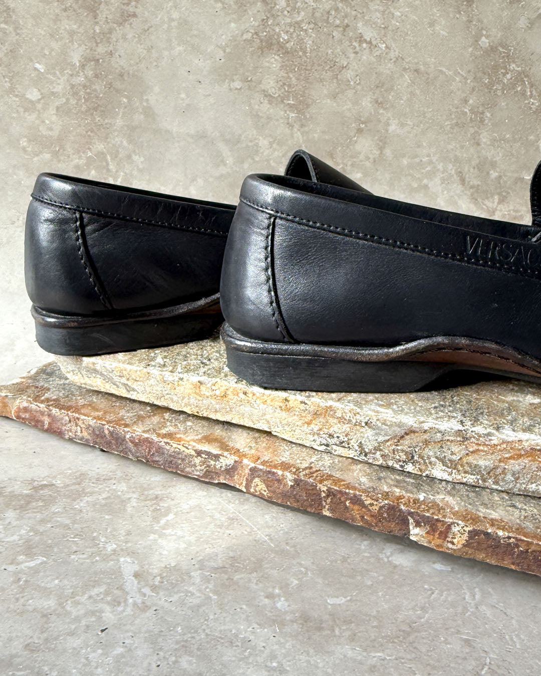 Vintage Gianni Versace calfskin leather slip on loafers with topstitching and square toes.