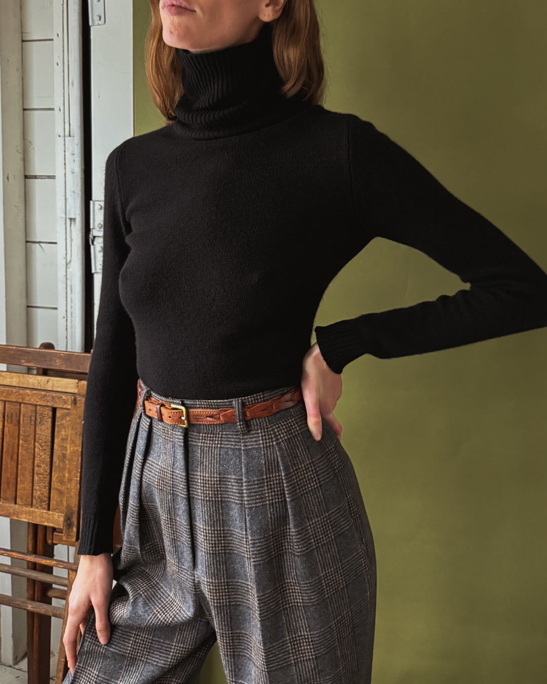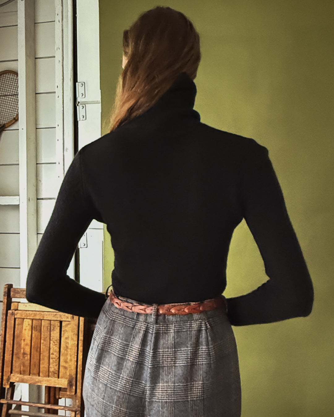 Vintage 1990s Celine jet black cashmere turtleneck sweater.