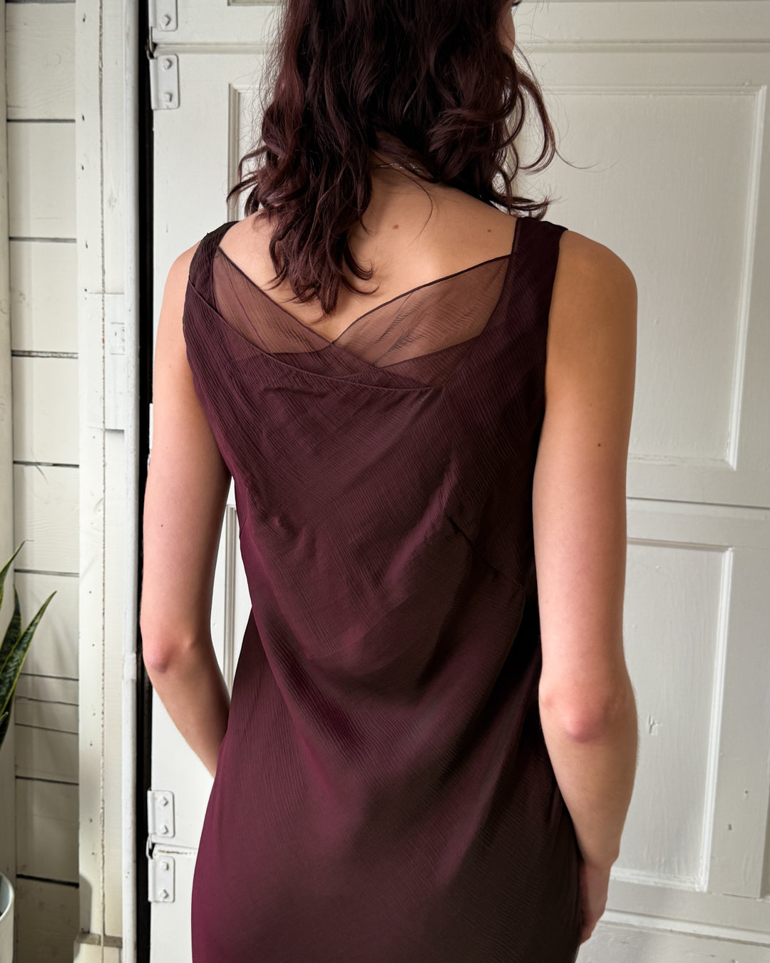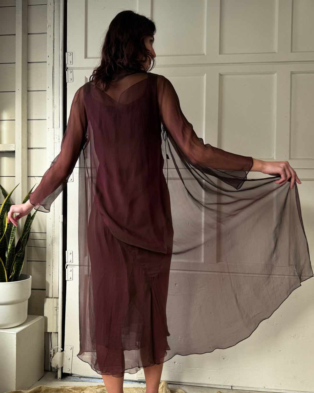 The Danes two-tone layered bias cut silk chiffon maxi dress with breezy silk topper.