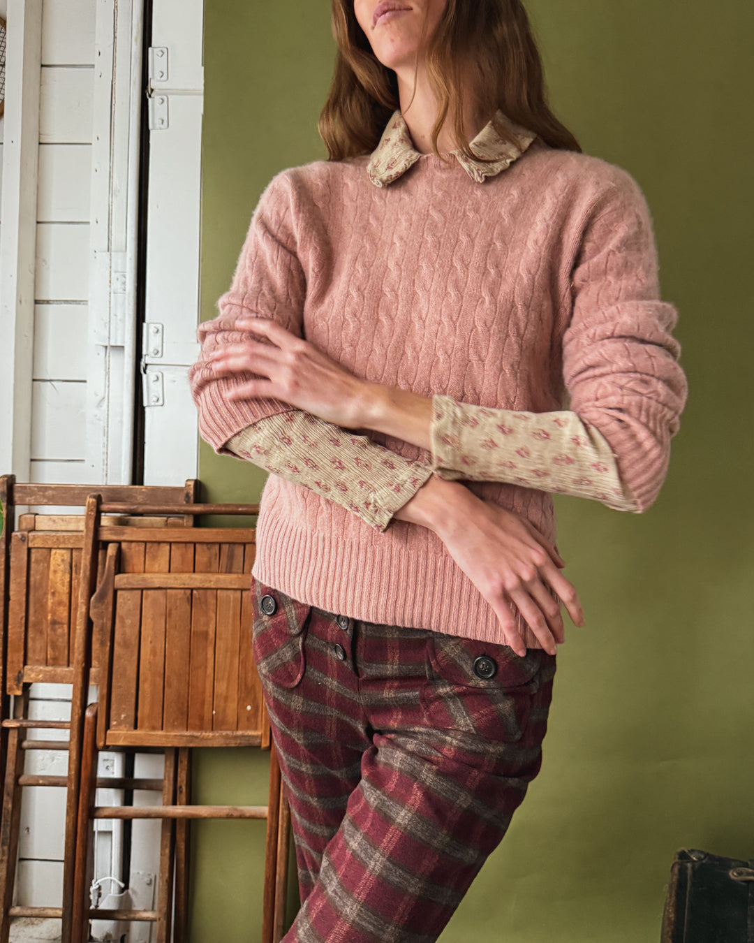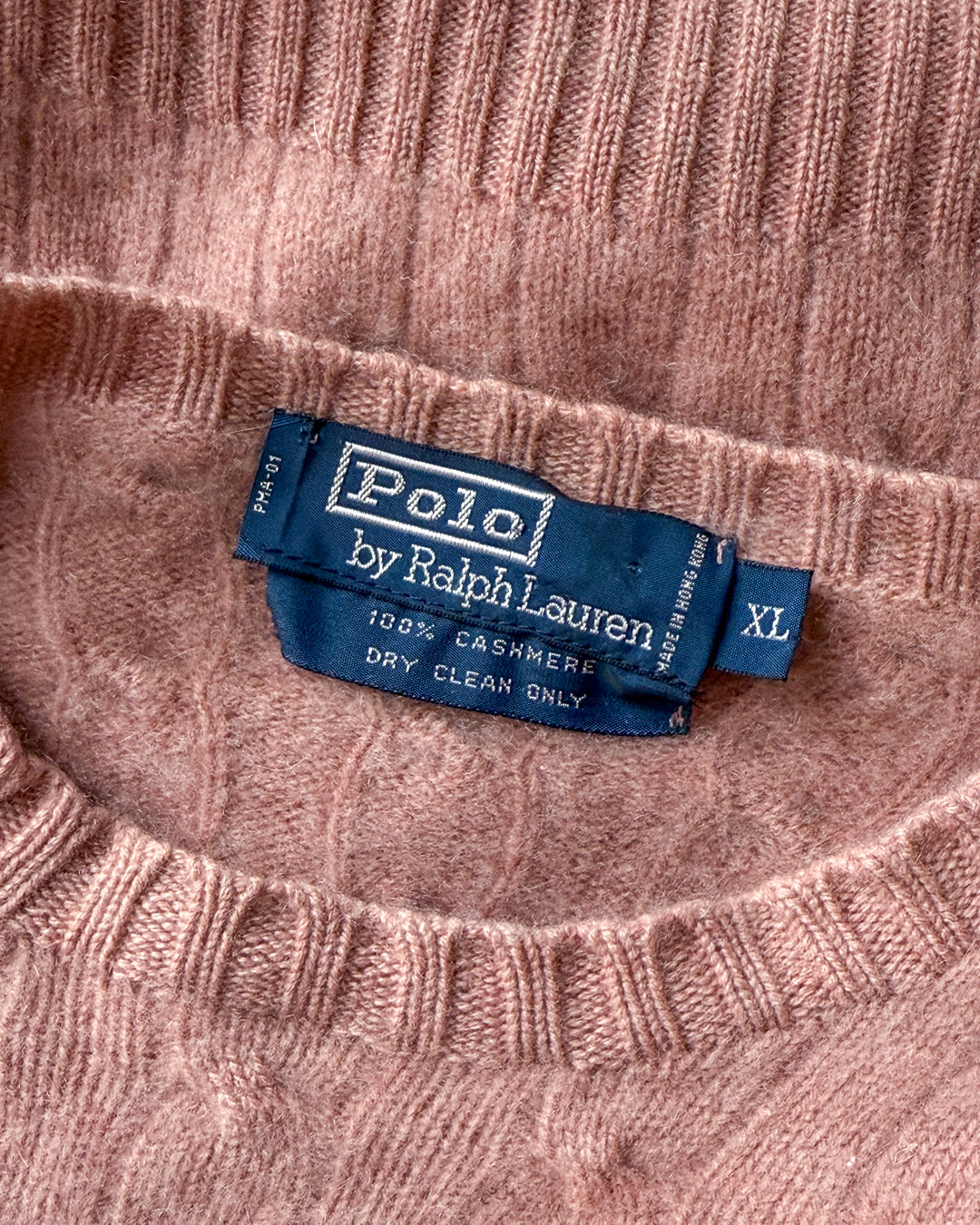 Vintage 1990s Ralph Lauren pink cashmere cable knit sweater.
