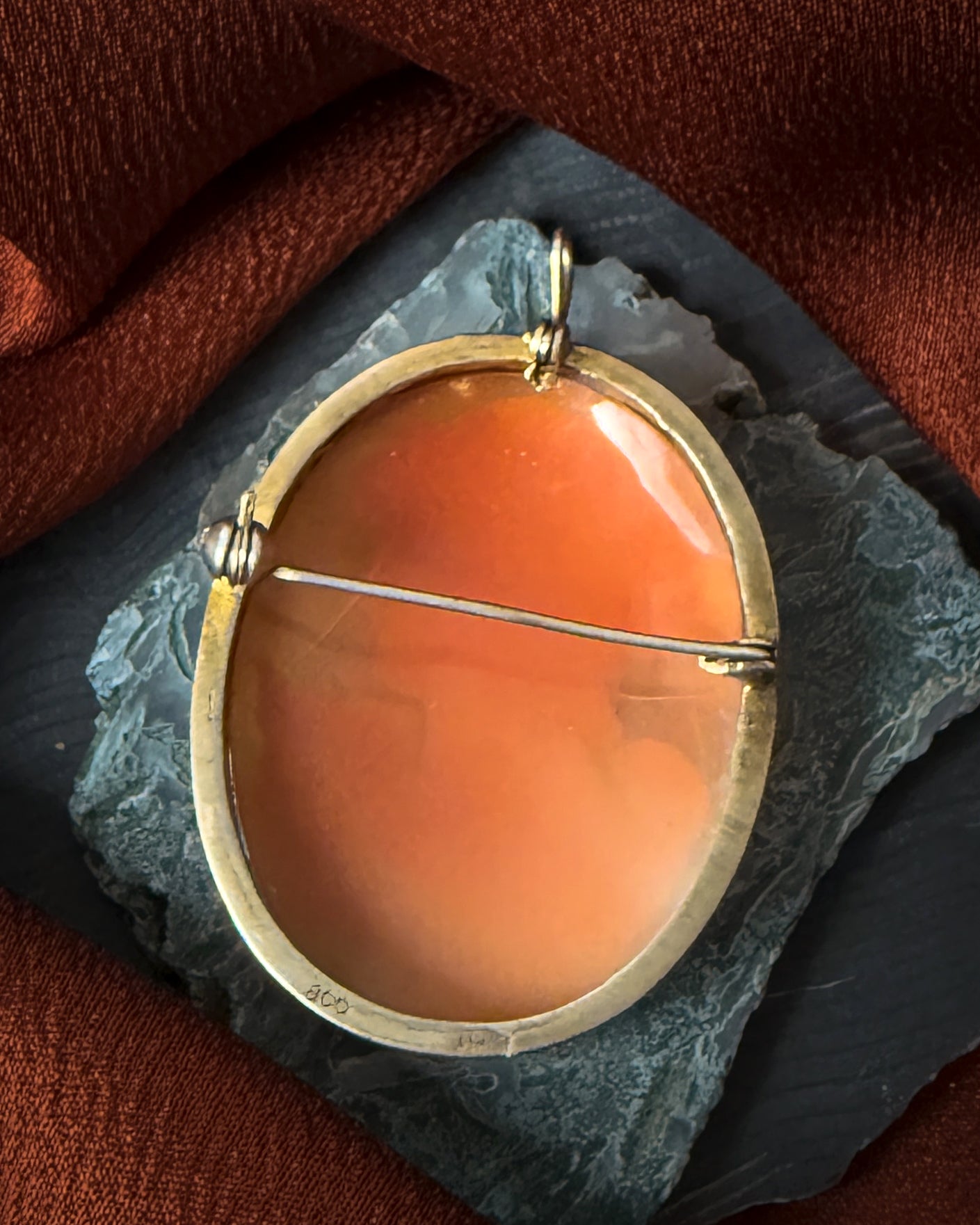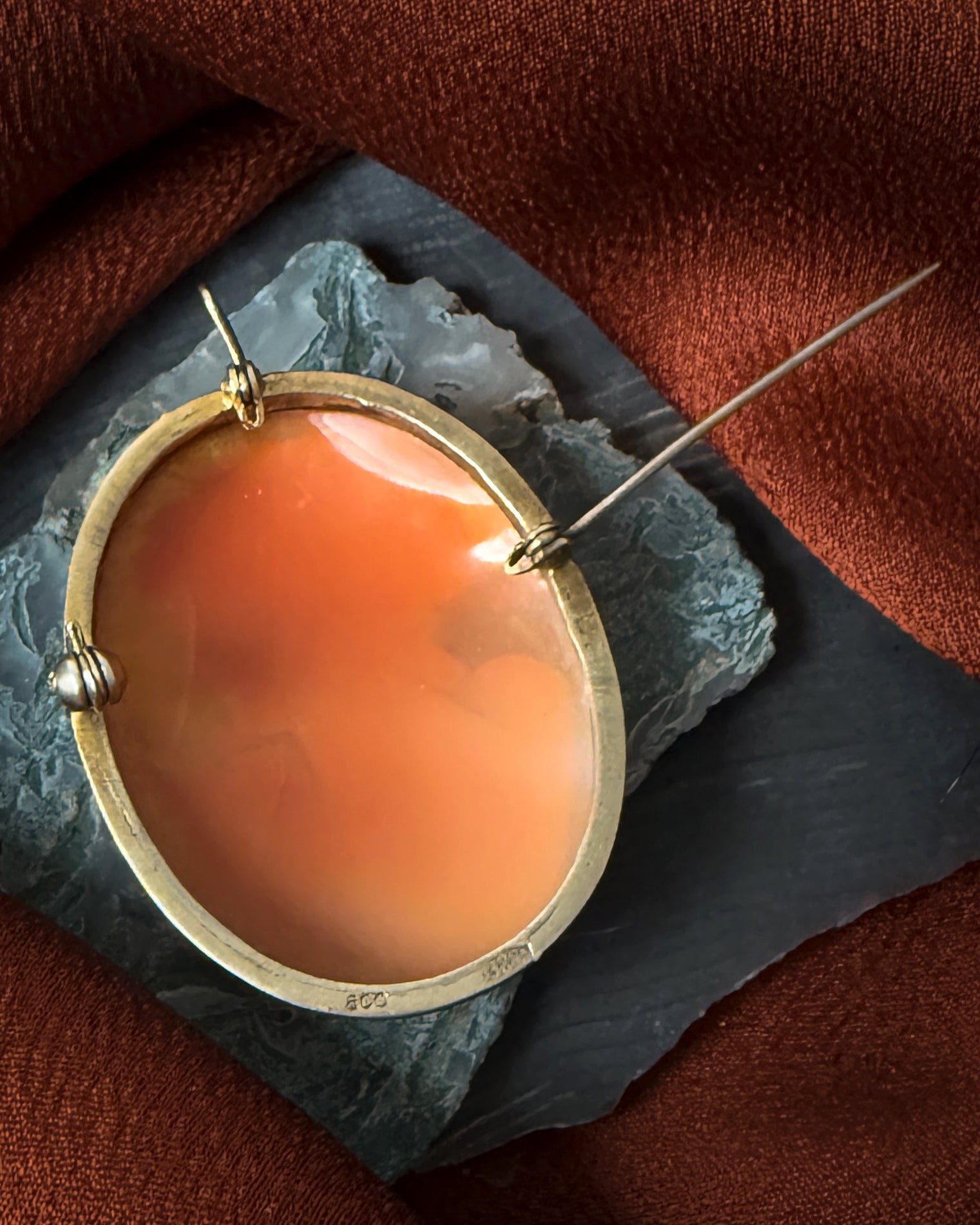 Antique silver natural carved shell cameo brooch. Can also be worn as a pendant necklace on a chain.