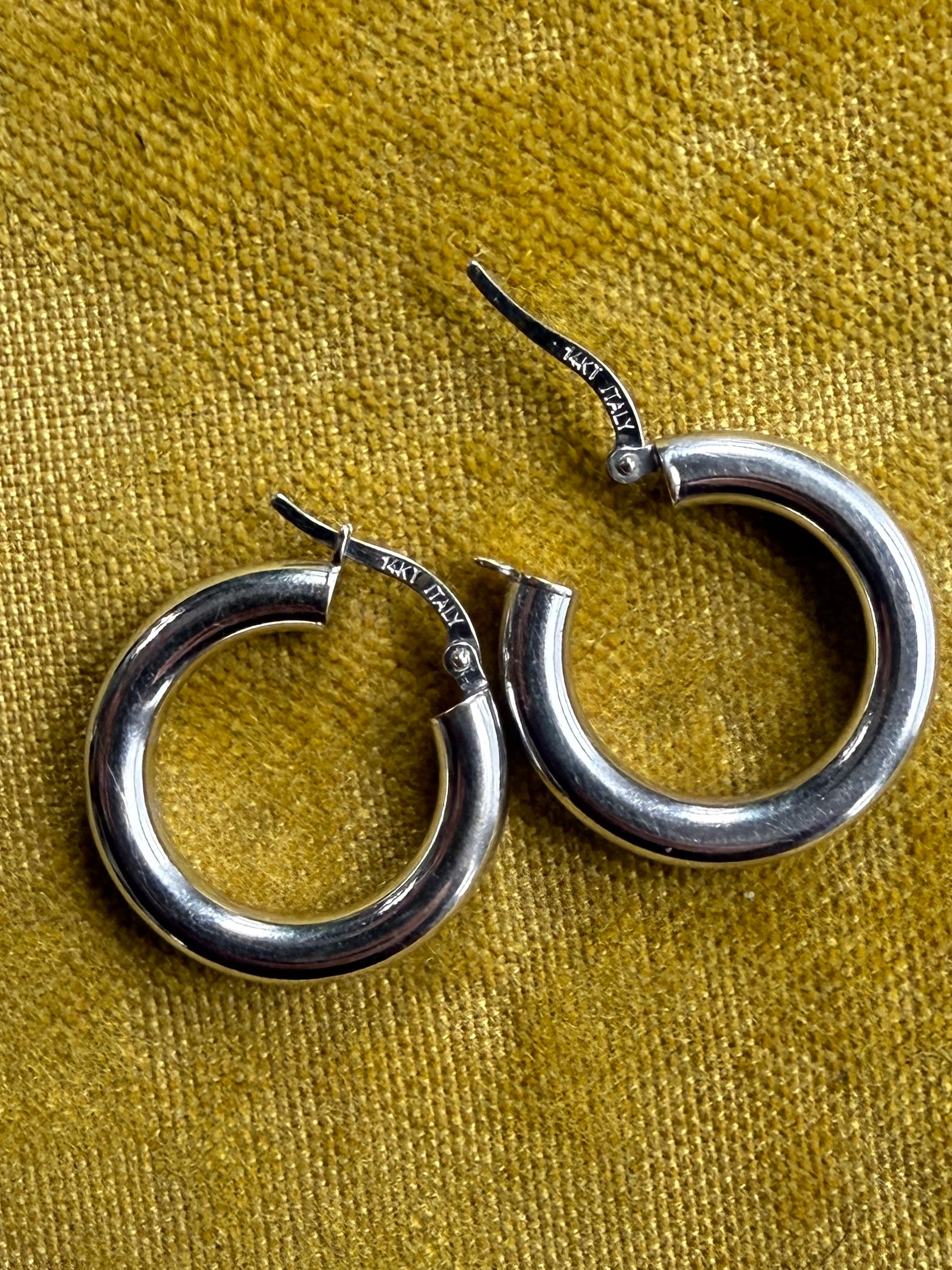 Vintage 14 karat white gold hollow hoop earrings. Lightweight & comfortable to wear.