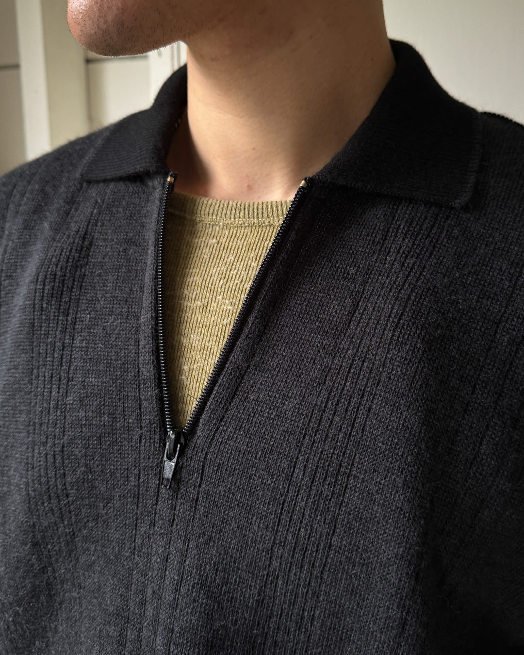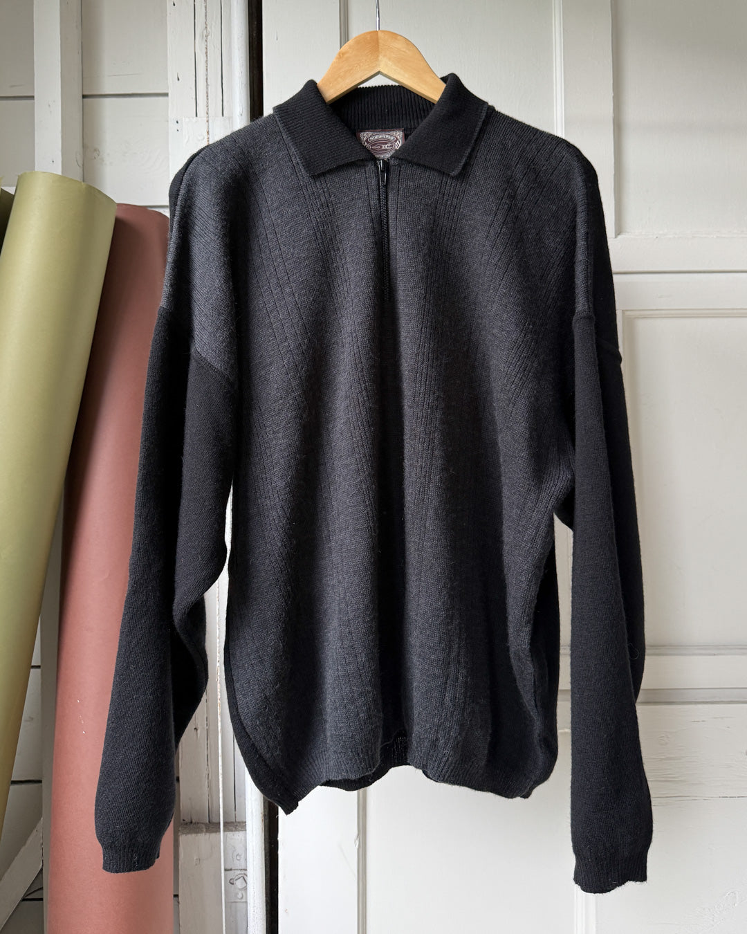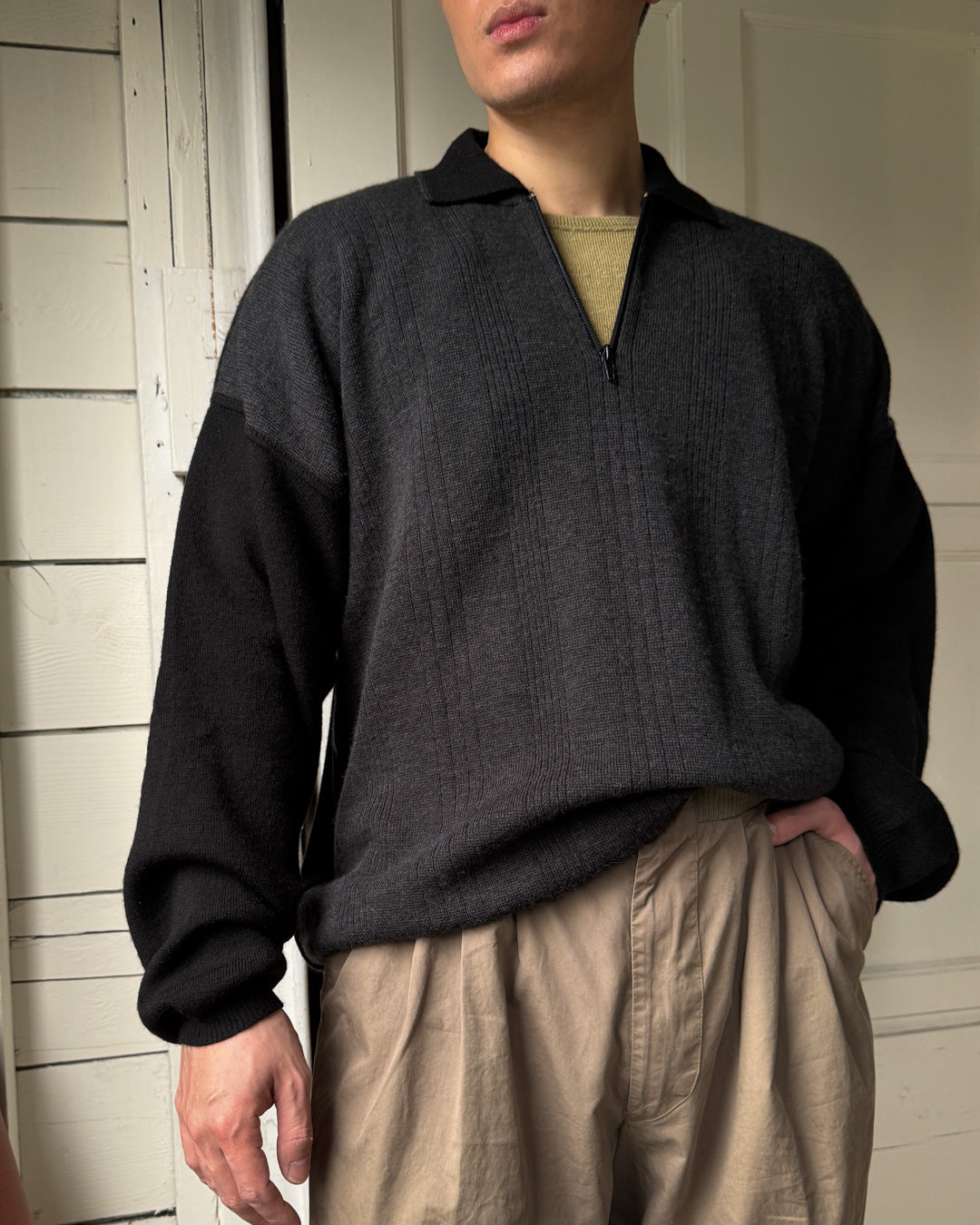 Vintage men's two tone gray & black wool blend pullover sweater with quarter zip. Made in Italy.