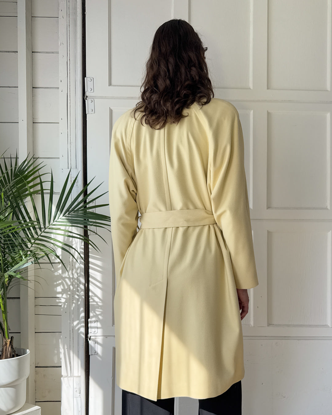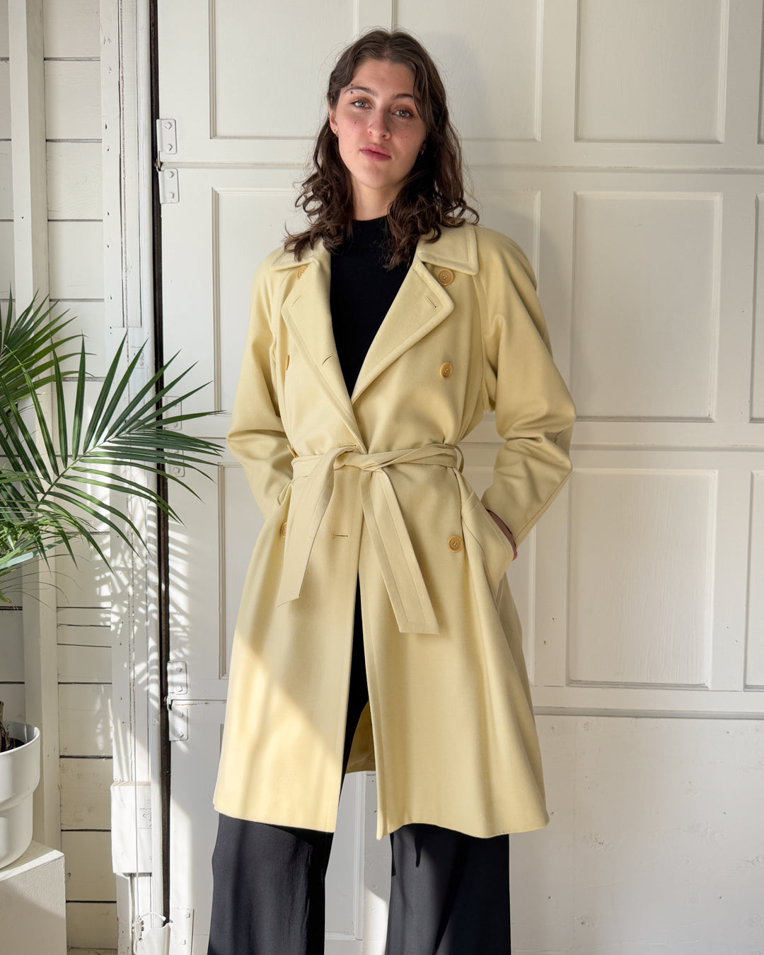 Vintage 1980s Escada ivory wool blend belted trench coat.