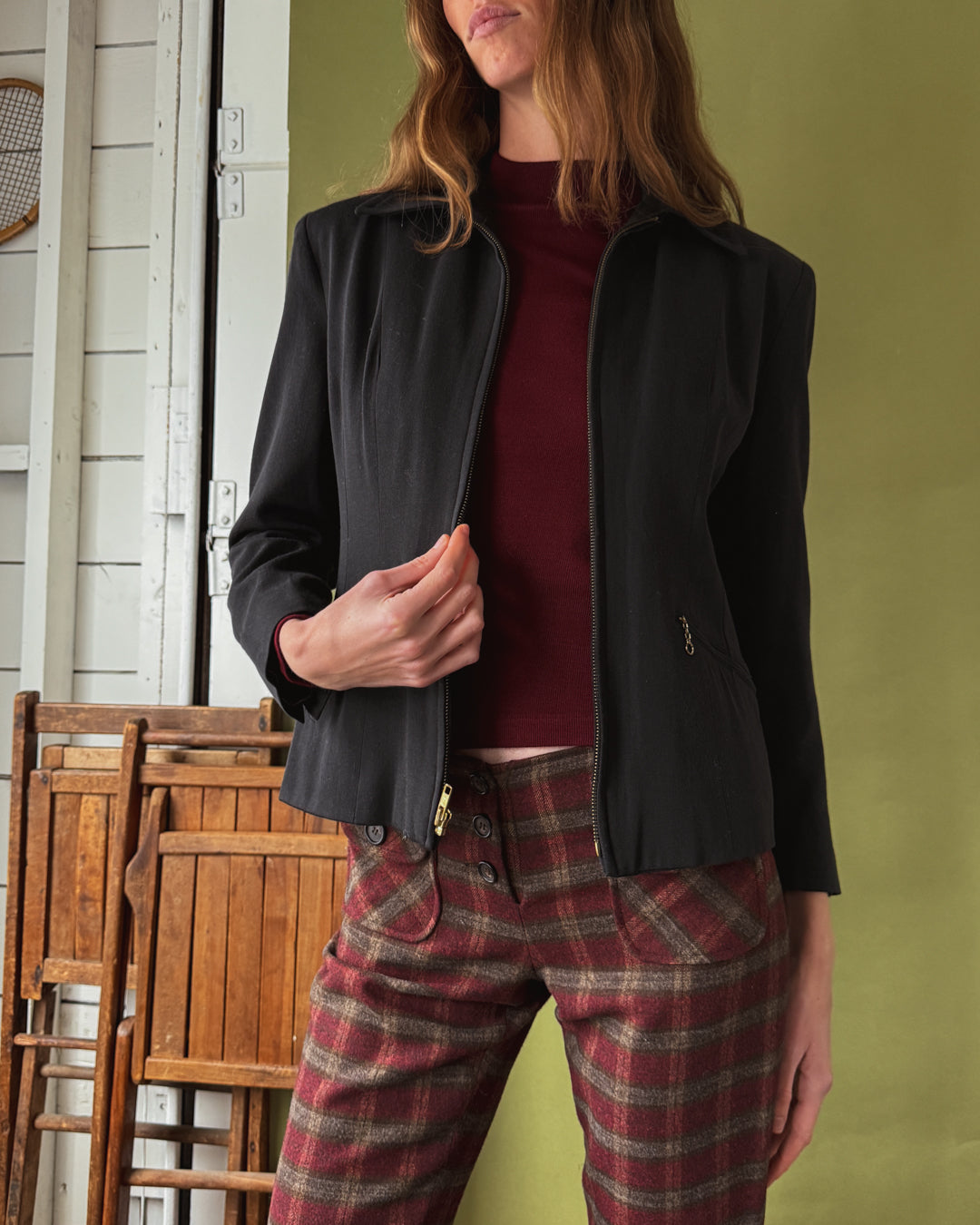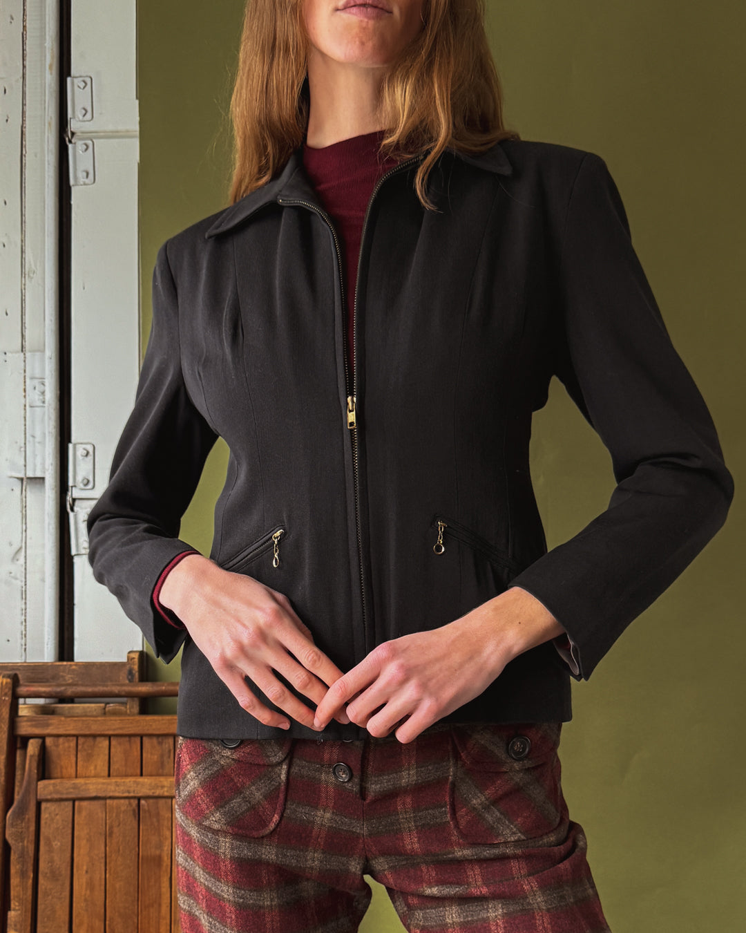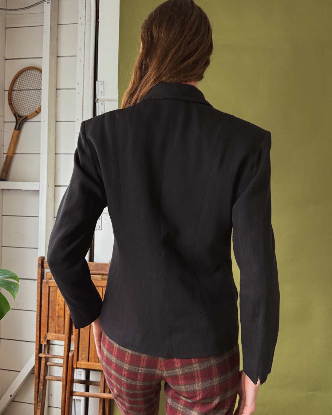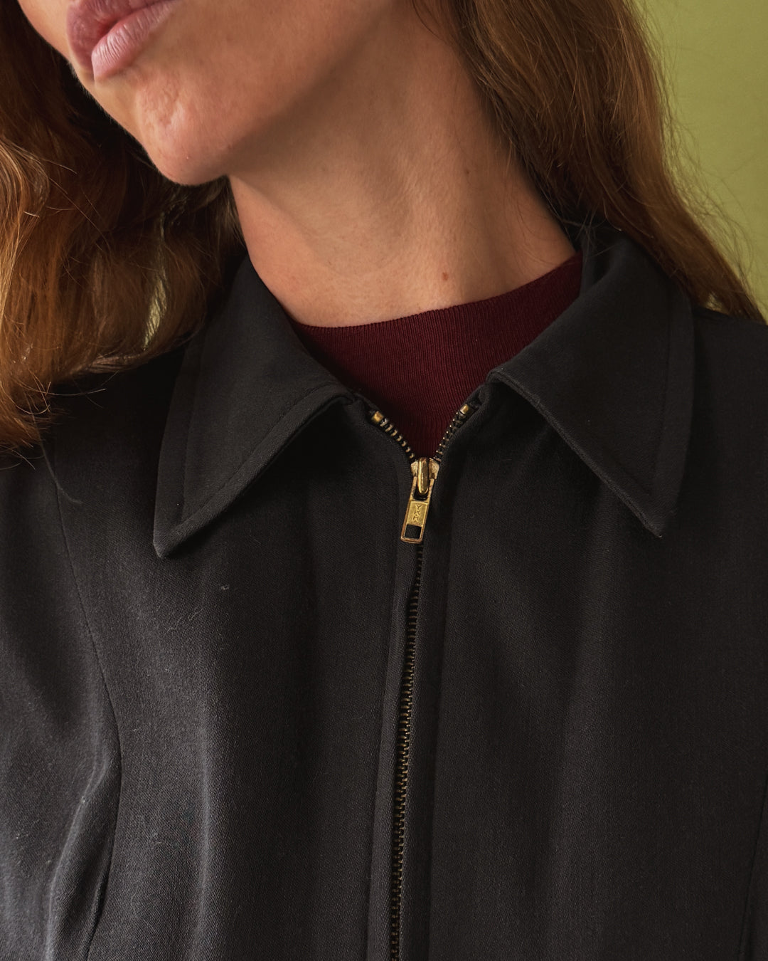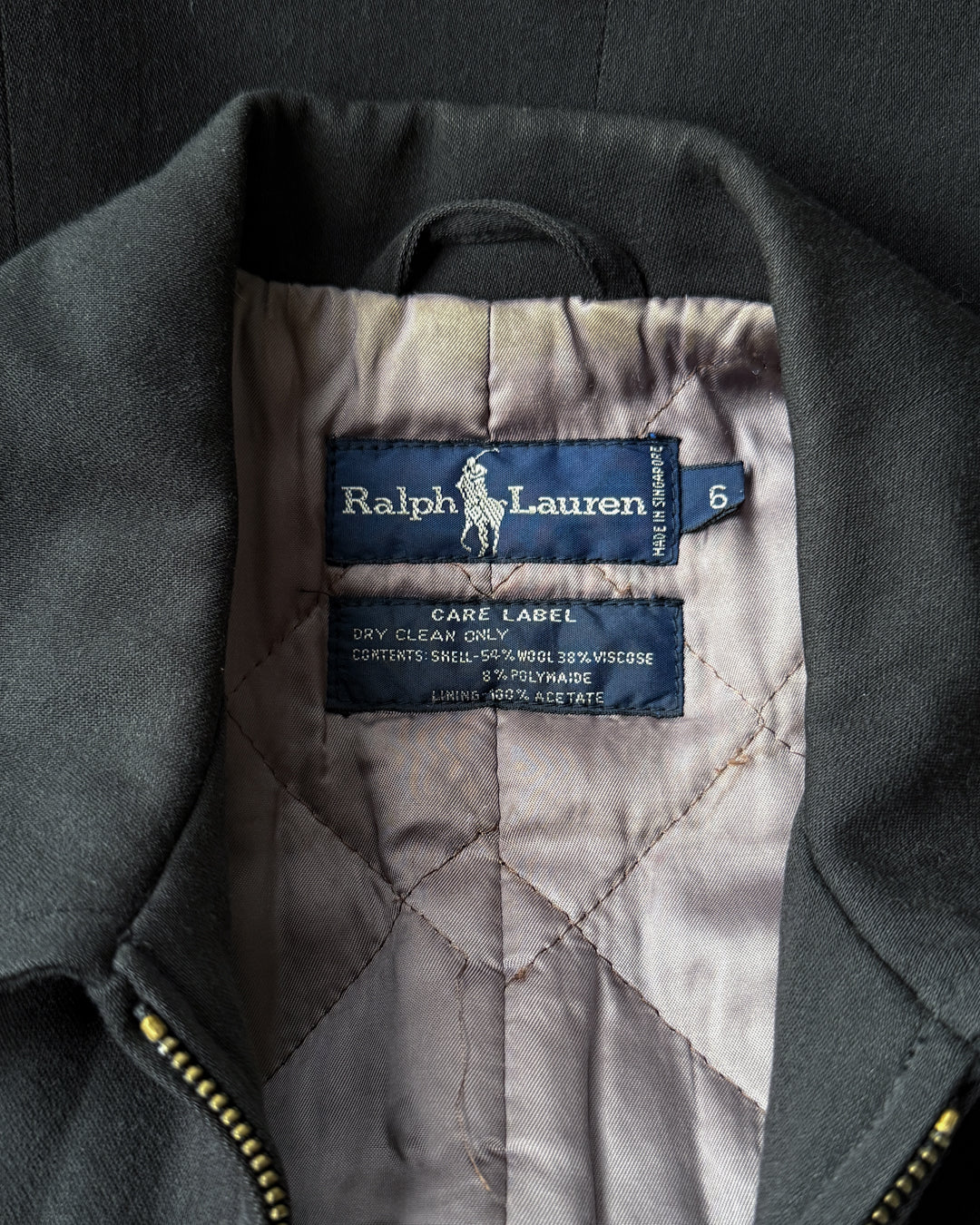 Vintage Ralph Lauren 1990s does 1940s black gabardine insulated jacket with angled front pockets.