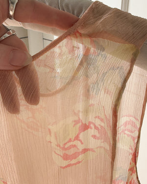 Vintage 1930s sheer pastel floral silk georgette dress.