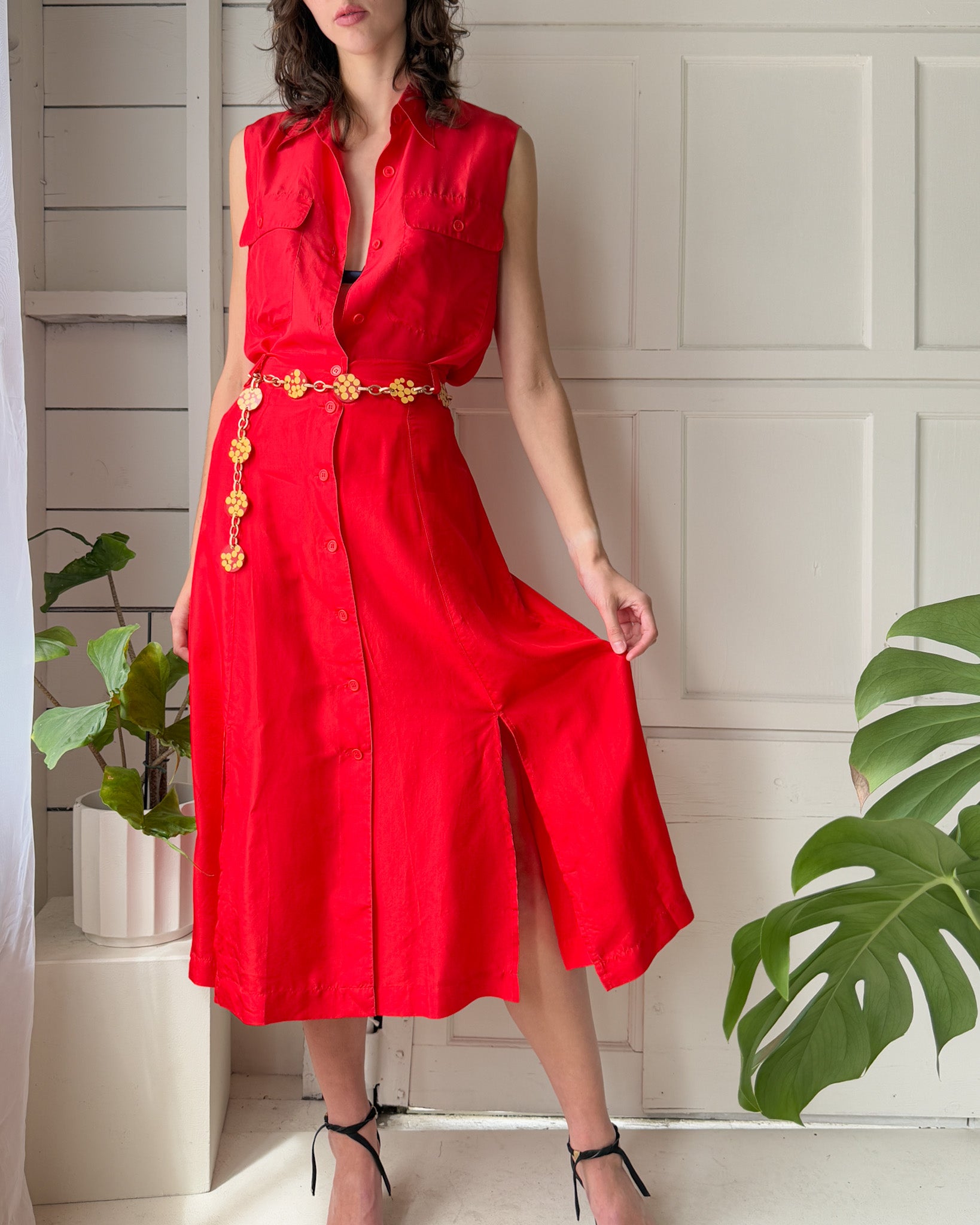Shown here with our 90s Red Silk Top & Skirt Ensemble
